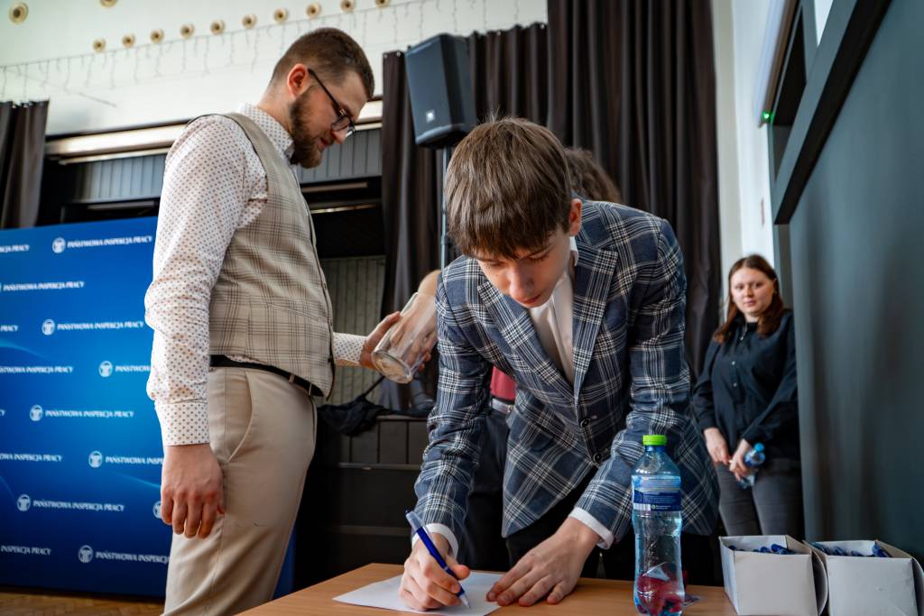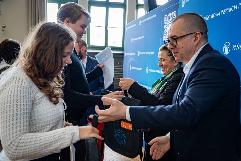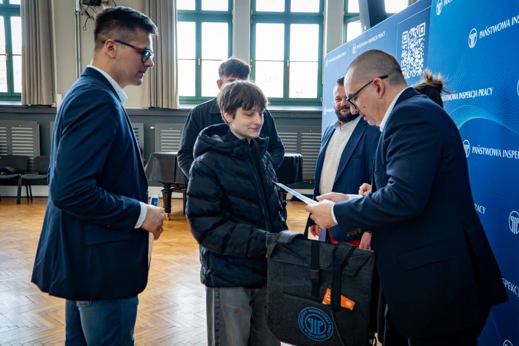 W komisji konkursowej zasiadali: p.o. zastępcy Okręgowego Inspektora Pracy – Artur Kempkiewicz oraz nadinspektorzy pracy: Karolina Zysk i Konrad Pachciarek.