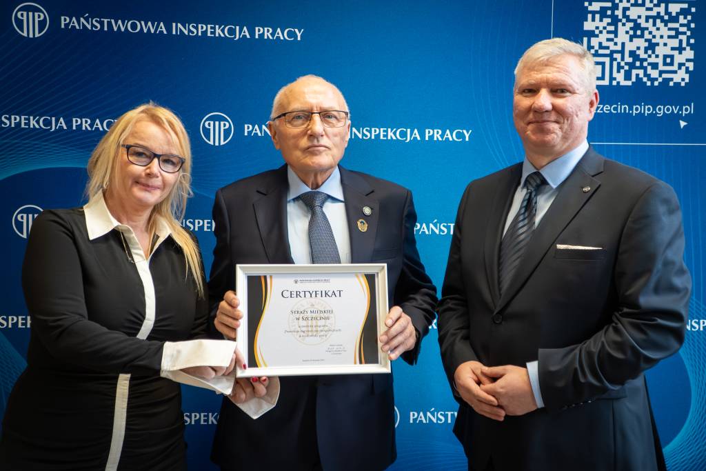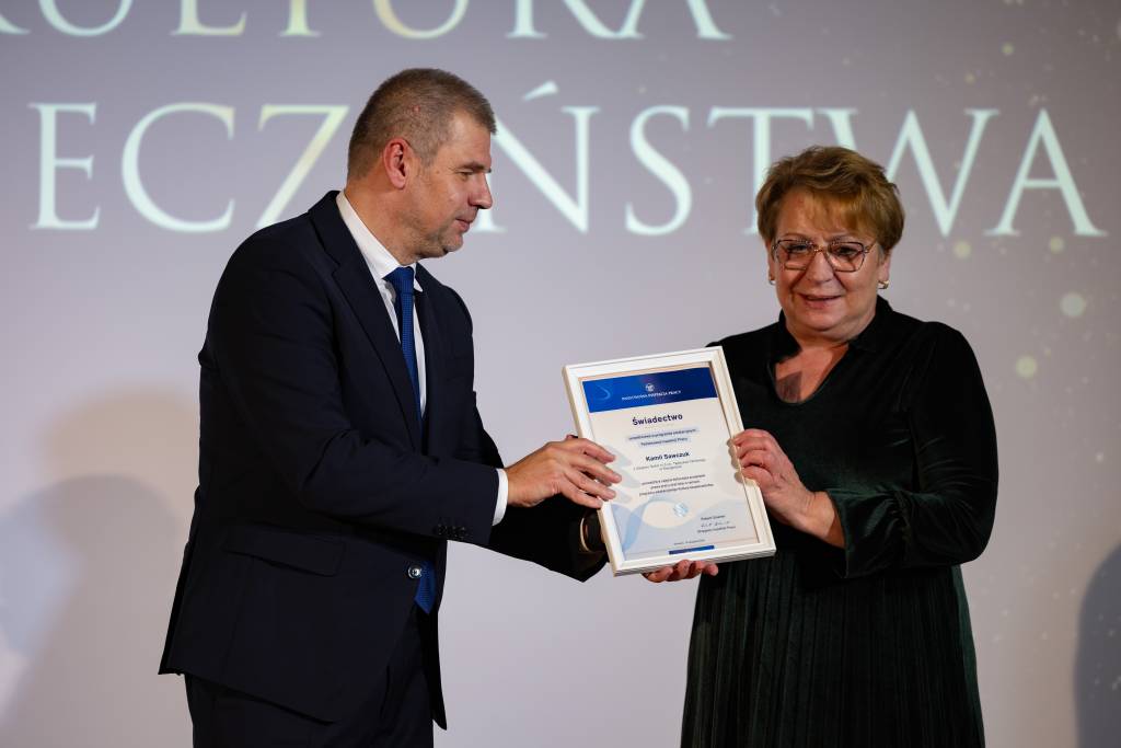 Ważnym punktem było uhonorowanie 40-lecia Wydziału Prawa i Administracji US, którego absolwenci pracują w naszym urzędzie i z którym to od wielu lat organizujemy wspólne konferencje czy webinary. Statuetkę z rąk Okręgowego Inspektora Pracy Roberta Golańskiego oraz zastępcy – nota bene absolwenta prawa – Marcina Goliszewskiego, odebrała dziekan - dr hab. Ewelina Cała-Wacinkiewicz, prof. US.